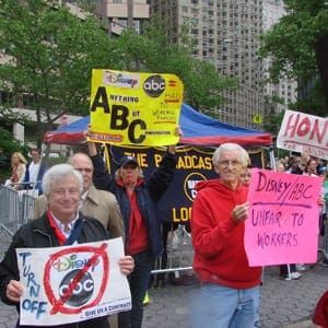 On Tuesday, May 17, fans of ABC’s recently canceled “All My Children” and “One Life to Live” protested outside of the Avery Fisher Hall at Lincoln Center in New York City as the ABC Television Network presented its 2011-2012 broadcast television schedule to its owned & operated stations, affiliates, advertising partners, and the dozens of press outlets gobbling up everything said during the networks upfront presentation. Joining protesting fans were Colleen Zenk (ex-Barbara Ryan, “As The World Turns”), Mimi Torchin (founding Editor in Chief of Soap Opera Weekly), and “One Life to Live’s” Ilene Kristen (Roxy Balsom). Also making their presence known was the Broadcast Television Union NABET CWA Local 16.