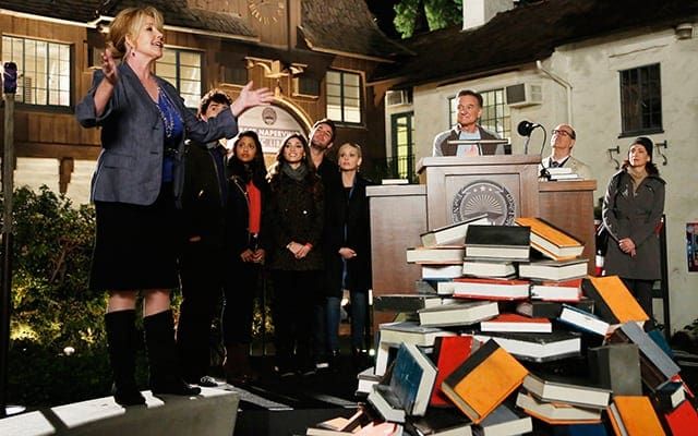 As we previously reported, “The Young and the Restless’” Melody Thomas Scott (Nikki Newman) is guest-starring on tonight’s episode of CBS’ hit sitcom, “The Crazy Ones.” The actress will be playing boozy librarian named Flora who enlists the help of Simon (Robin Williams) and his team to help her save her library.